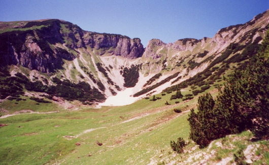Die Matten säumen kühne Felsgestalten,